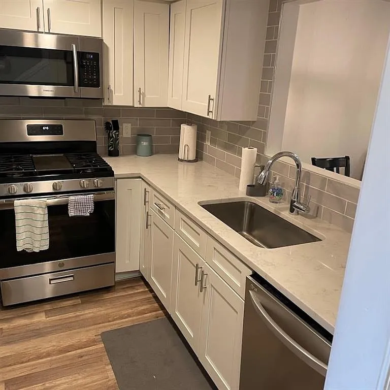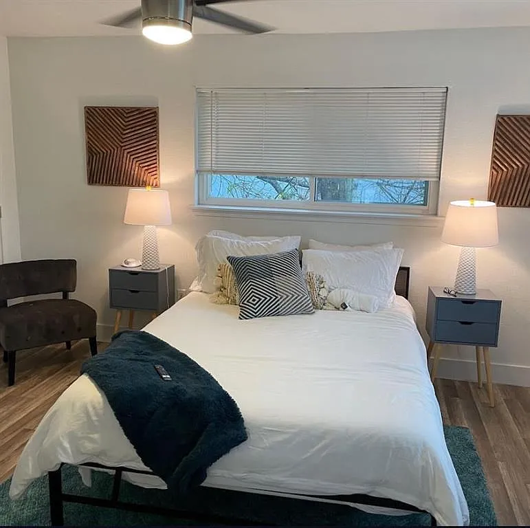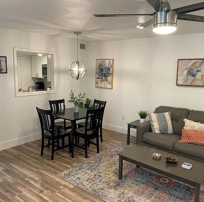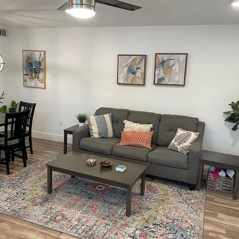 Lovely Wooten neighborhood gated community. Updated with style and maintained. End unit with abundant light. Large 2 Bedroom 1.5 Bathroom. Quartz countertops, wood flooring, washer and dryer included, gas range, private patio. Kitchen overlooks the living room. 2 assigned parking spaces. In the heart of North Austin near the Domain, Arboretum, Q2 Stadium, restaurant, shopping, and entertainment galore. Lease it furnished for $1749/m